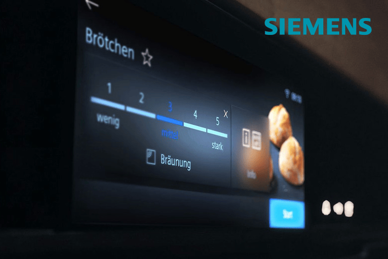 Der iQ700 Backofen von Siemens erkennt mithilfe von KI 80 Gerichte und wählt automatisch das passende Programm – für Brot, Pizza, Lasagne und mehr. Die integrierte Backofenkamera und KI machen Kochen einfacher denn je. Nutzer wählen nur noch, wie knusprig das Ergebnis sein soll. Der intelligente Bräunungssensor sorgt für perfekte Ergebnisse. Über die Siemens App kann der Ofen bequem per Handy gesteuert werden. Schlichte, dunkle Glasflächen und ein elegantes Design runden den modernen Look ab.